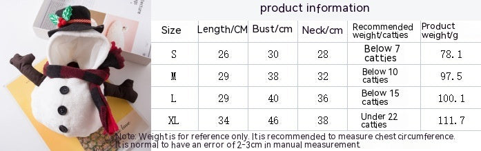 Christmas Pet Funny Clothes Snowman Pet Costume